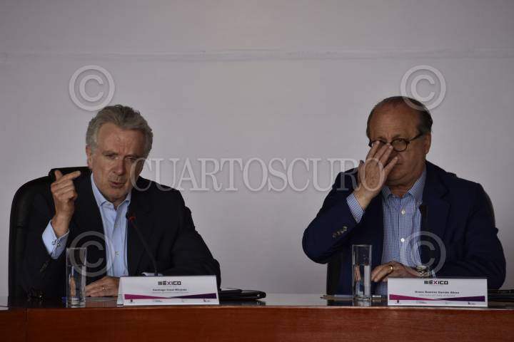 CUERNAVACA, MORELOS, 25AGOSTO2017.- Santiago Creel, presidente de la Comisión de Elecciones del PAN, y Graco Ramírez, gobernador del Estado de Morelos, durante su participación en la mesa y clausura del Coloquio "México: 2018: La transición posible" celebrado en el Centro Cultural Teopanzolco. En el foro se discutieron los elementos clave para la elección del candidato del Frente Amplio Democrático rumbo a las elecciones electorales de 2018. FOTO: MARIO JASSO /CUARTOSCURO.COM