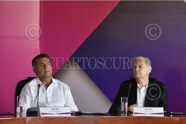 CUERNAVACA, MORELOS, 25AGOSTO2017.- Jaime Rodríguez Calderón “El Bronco”, gobernador de Nuevo León, y Luis Ernesto Derbez, rector de la Universidad de las Américas Puebla, durante su participación en la mesa y clausura del Coloquio "México: 2018: La transición posible" celebrado en el Centro Cultural Teopanzolco. En el foro se discutieron los elementos clave para la elección del candidato del Frente Amplio Democrático rumbo a las elecciones electorales de 2018. FOTO: MARIO JASSO /CUARTOSCURO.COM