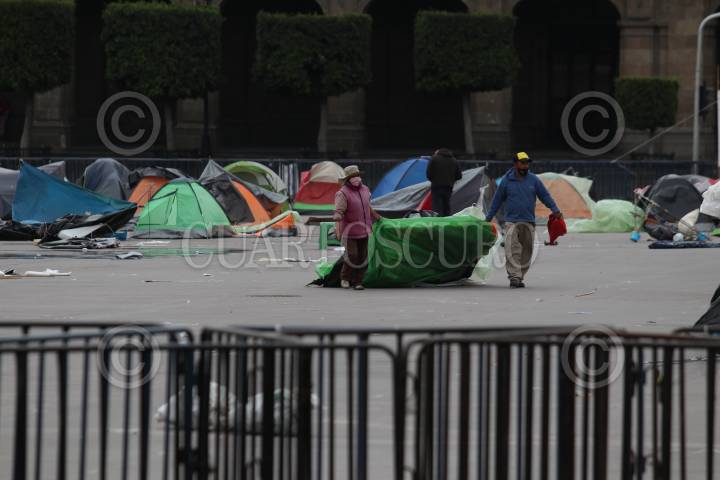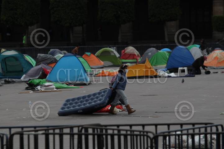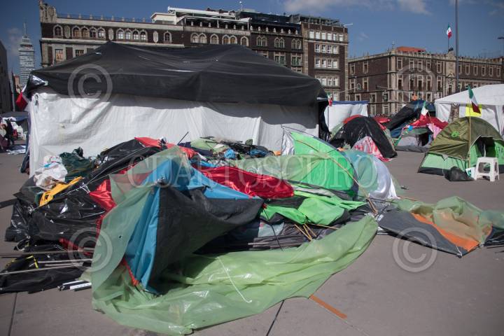 Retiro de tiendas de campaña en el campamento de FRENAAA.