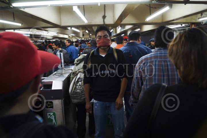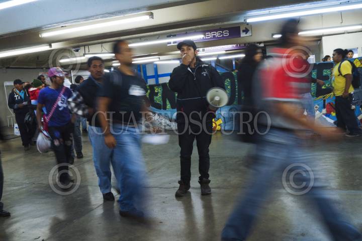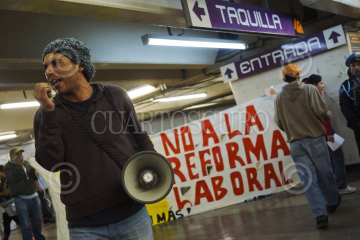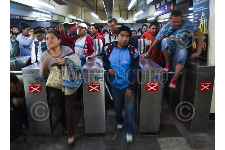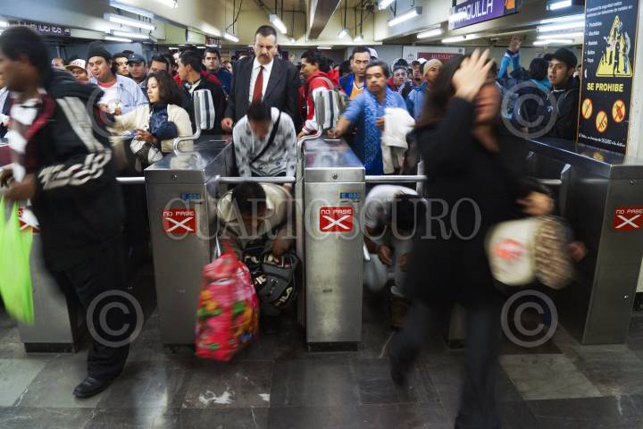 MÉXICO, D.F., 13NOVIEMBRE2012.- Estudiantes de diversas universidades los cuales integran el Frente Popular, protestaron en el metro Pantitlán (línea A), manifestándose en contra de la Reforma Laboral, dejando pasar sin pagar boleto a los usuarios del metro. FOTO: PEDRO ANZA /CUARTOSCURO.COM