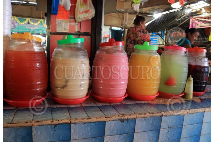 CUERNAVACA, MORELOS, 17MAYO2019.- Venta de aguas frescas de diversos sabores en el área de comida del mercado Adolfo López Mateos. FOTO: MARGARITO PÉREZ RETANA /CUARTOSCURO.COM