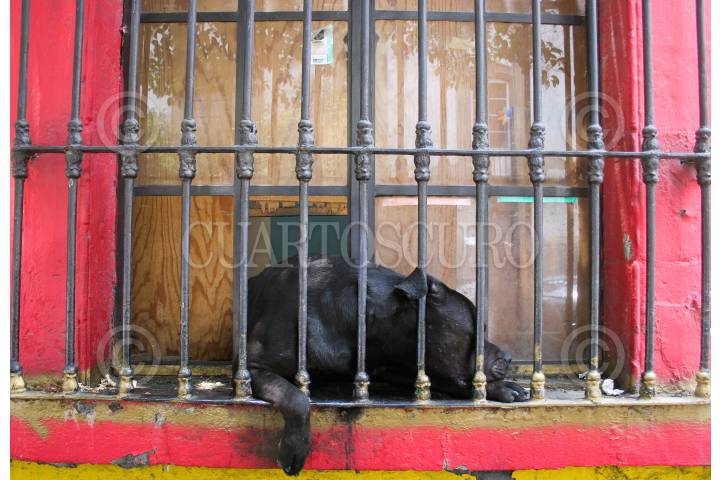 MEXICO, D.F., 17AGOSTO2009.- Un perro toma el aire fresco en la ventana de su casa, algunos capitalinos tienen mascotas las cuales descuidan y las tienen en condiciones insalubres, FOTO: RICARDO CASTELAN/CUARTOSCURO.COM