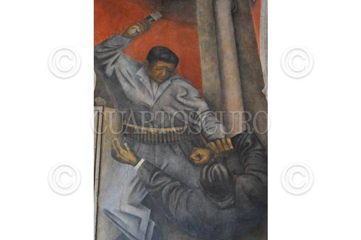 MÉXICO, D.F., 19MAYO2011.- Concluyeron los trabajos de restauración de el fresco Revolución. Su intervención, por parte de alumnos y egresados de la ENCRyM bajo supervisión del INBA, permitió recuperar una apariencia muy similar a la que debieron tener originalmente Los frescos El canto y la música, así como Revolución, que constituyen los murales más importantes realizados por el artista oaxaqueño Rufino Tamayo en los años 30 del siglo XX, dentro de la llamada Escuela Mexicana, fueron restaurados por especialistas del Instituto Nacional de Antropología e Historia (INAH-Conaculta) para su óptima conservación. Ambas obras se localizan en sedes del INAH, en inmuebles ubicados en el Centro Histórico de la Ciudad de México, en la calle de Moneda 13 y 16, donde respectivamente se alojan el Museo Nacional de las Culturas y la Subdirección de Laboratorios y Apoyo Académico. Jaime Cama Villafranca, restaurador perito del INAH, encabezó el equipo encargado de la intervención. FOTO: INAH/CUARTOSCURO.COM