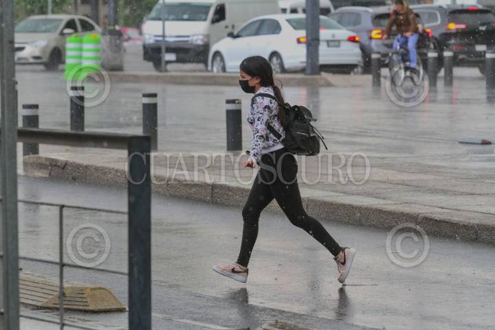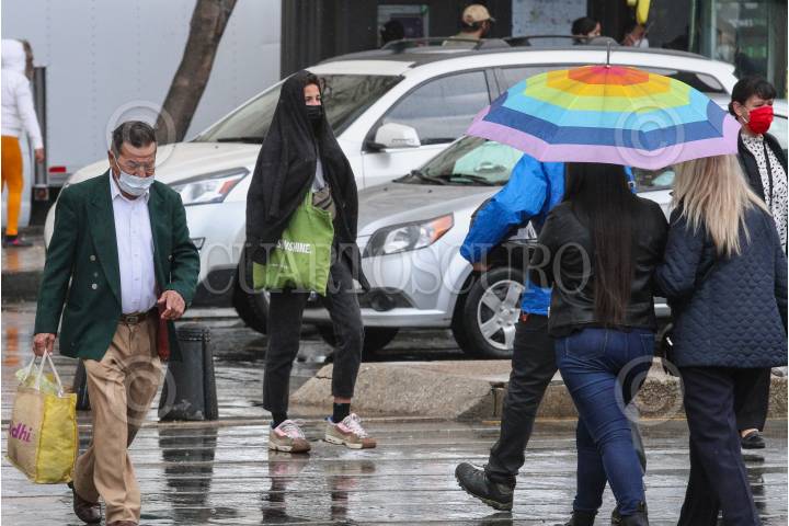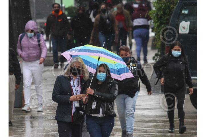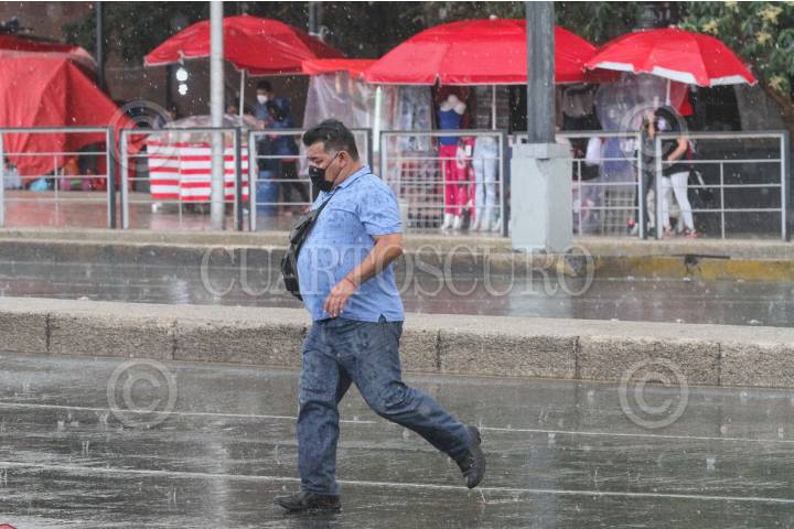 Lluvia y viento sorprende a capitalinos en el primer cuadro de la ciudad.