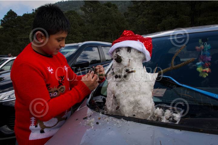Pese a bajas temperaturas capitalinos acudieron al Ajusco para disfrutar de la nieve.