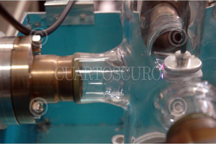 CUERNAVACA, MORELOS.- 06FEBRERO2008.- Un instrumento de investigación muestra un plasma de color morado en el Laboratorio de Plasmas Fríos del Instituto de Ciencas Físicas de la UNAM en su campus Morelos. FOTO: RODOLFO ANGULO/CUARTOSCURO.COM
