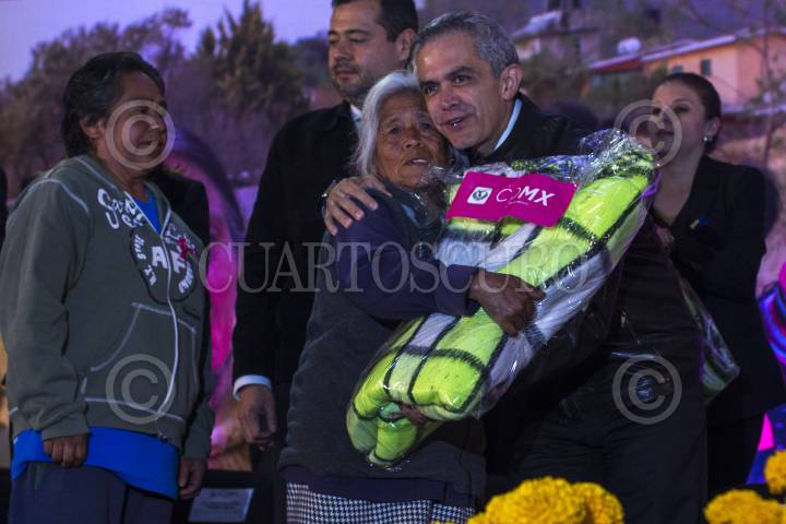MÉXICO, D.F., 03NOVIEMBRE2015.- Miguel Ángel Mancera Jefe de Gobierno Capitalino asistió a la delegación Álvaro Obregón donde realizó la entrega de Cobijas para esta temporada decembrinas; en el lugar también se instalaron puestos de atención a la salud donde vacunaran contra la Influenza y atenderán de manera jurídica a las personas que tengan algún problema en papeles personales. FOTO: ENRIQUE ORDÓÑEZ /CUARTOSCURO.COM