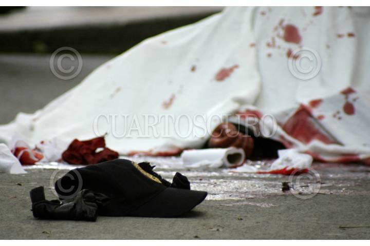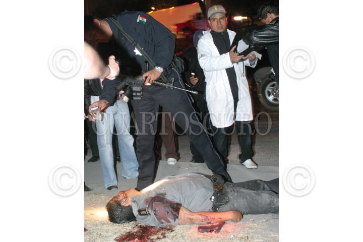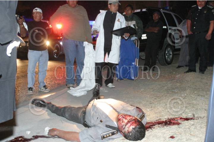 CUAUTITLAN IZCALLI, ESTADO DE MÉXICO, 05ENERO2009.- En el Kilómetro 35 de la autopista México-Queretaro fue ejecutado de varios disparos de arma de fuego el policía municipal José Antonio García Carrasco y su compañero de unidad Gregorio Portillo Gutiérrez, resulto lesionado al intentar frustrar un asalto en un camión del transporte público en la lateral de la autopista. FOTO: LUZ ACEVEDO/CUARTOSCURO.COM