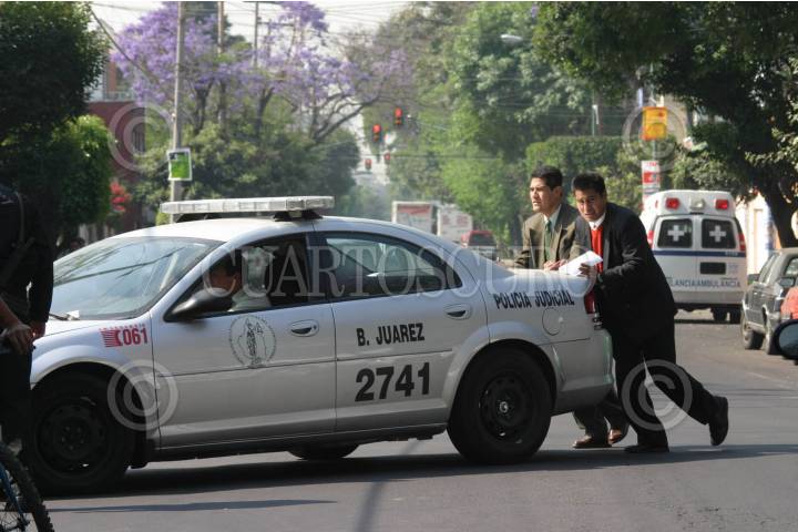 MEXICO,D.F.30MARZO2007.- Al frustrar un asalto a una camioneta con cigarros un policia estatal murio a balazos, varios en las calles Bolivar y Estafeta en la Colonia Postal. FOTO PEDRO MARRUFO/CUARTOSCURO.COM