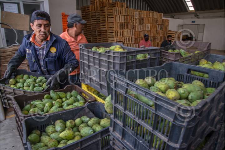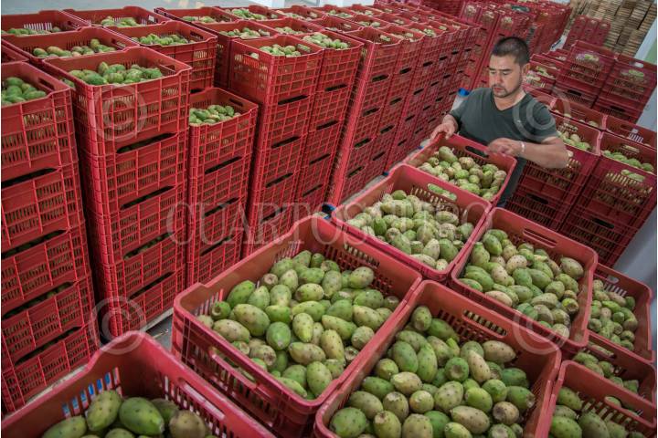 Productores de tuna empaquetan los huacales del fruto para exportación a Estdos Unidos; Canadá; Chile; Holanda; Alemania; Bélgica y Francia.