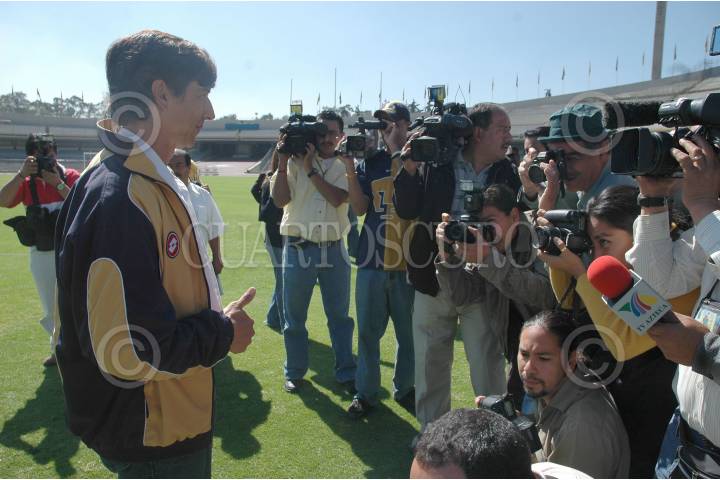 MEXICO, D.F. 02NOVIEMBRE2005.- Miguel España fue presentado como nuevo director técnico de los Pumas de la UNAM en sustitución de Hugo Sánchez en el Estadio de Ciudad Universitaria. FOTO: Iván Stephens/CUARTOSCURO.COM