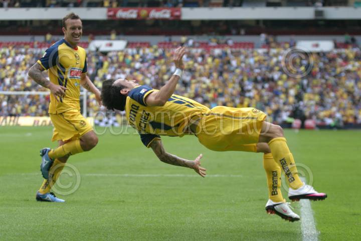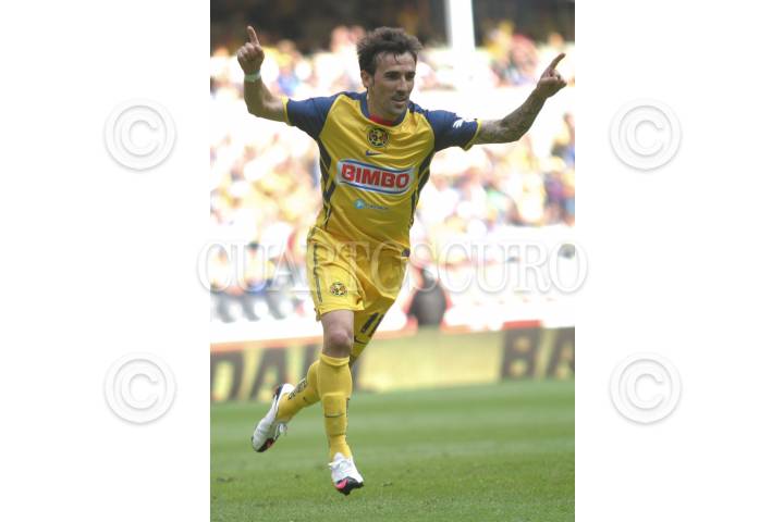 MÉXICO, D.F., 01AGOSTO2010.- Vicente Sánchez, jugador de las águilas del América, festeja la segunda anotación en el partido de la jornada 2 del torneo Apertura 2010 donde el América venció 3 goles a cero a los jaguares de Chiapas. FOTO: IVAN STEPHENS/CUARTOSCURO.COM