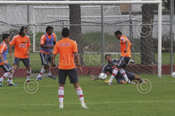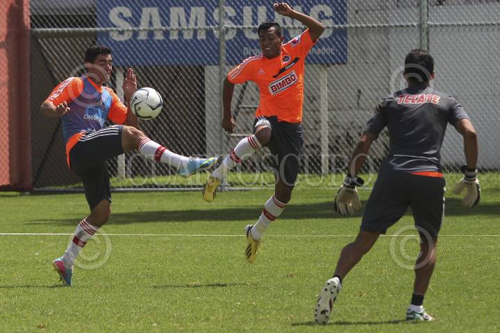 ZAPOPAN, JALISCO, 29AGOSTO2013.- El equipo de las Chivas de Guadalajara llevó a cabo su práctica matutina con vistas al siguiente compromiso correspondiente a la Jornada 8 del Torneo Apertura 2013 de la Liga BBVA Bancomer MX, frente a los Diablos Rojos del Toluca, en el Estadio Omnilife.. FOTO: FERNANDO CARRANZA /CUARTOSCURO.COM