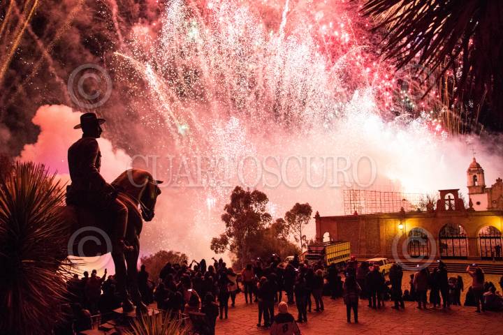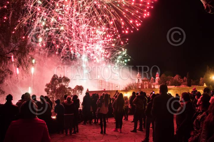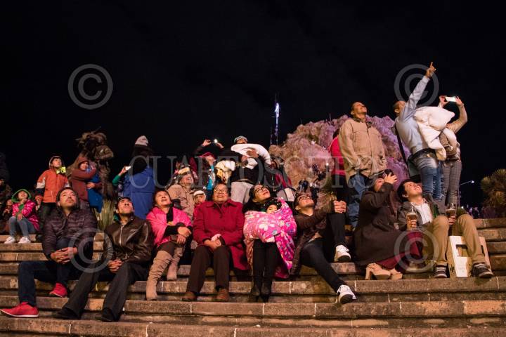 ZACATECAS, ZACATECAS, 1ENERO2018.- Decenas de personas se dieron cita en el cerro de la Bufa, para apreciar los fuegos pirotécnicos y darle la bienvenida al año nuevo. FOTO: MISAEL VALTIERRA / CUARTOSCURO.COM