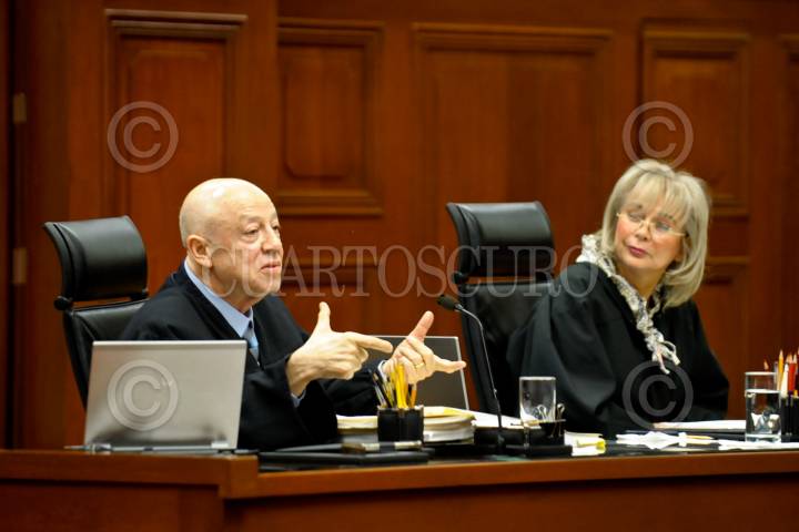 MÉXICO, D.F., 09AGOSTO2012.- Los ministros Guillermo Ortiz Mayagoitia, y Olga Sánchez Cordero durante de la sesión del Pleno de la Suprema Corte. En el tema del "Fuero Militar", con ocho votos a favor y dos en contra, los ministros resolvieron que los delitos cometidos por elementos de las Fuerzas Castrenses, en el que un civil esté involucrado, tienen que ser juzgados por las autoridades judiciales Civiles, y no por jueces del Ejército Mexicano. FOTO: CUARTOSCURO.COM