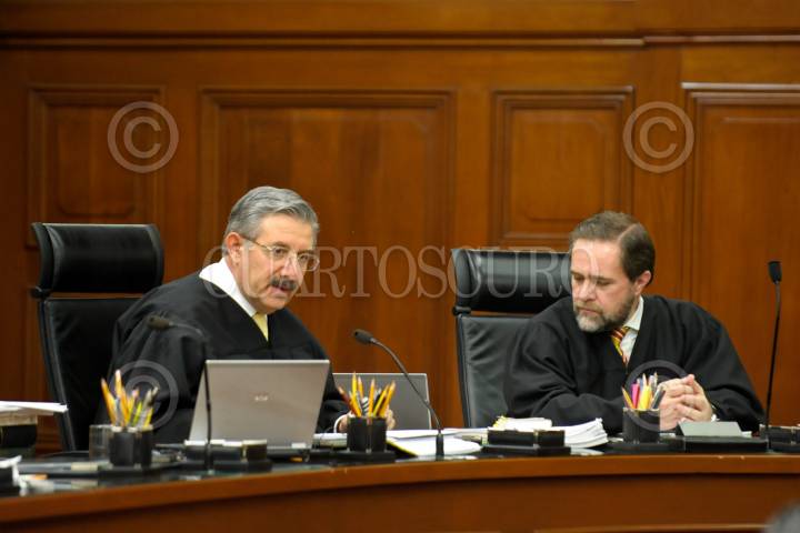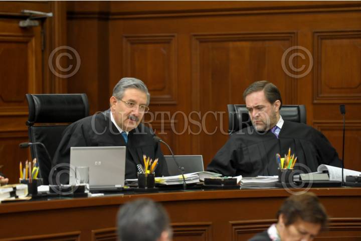 MÉXICO, D.F., 09AGOSTO2012.- Los ministro José Fernando Franco González Salas, y José Cosío Villegas, durante de la sesión del Pleno de la Suprema Corte. En el tema del "Fuero Militar", con ocho votos a favor y dos en contra, los ministros resolvieron que los delitos cometidos por elementos de las Fuerzas Castrenses, en el que un civil esté involucrado, tienen que ser juzgados por las autoridades judiciales Civiles, y no por jueces del Ejército Mexicano. FOTO: CUARTOSCURO.COM