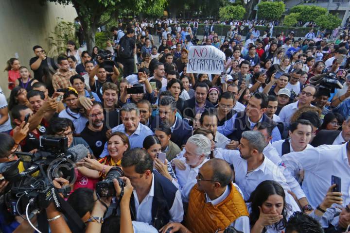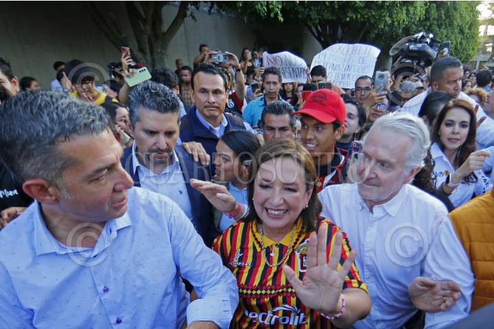 GUADALAJARA, JALISCO, 16ABRIL2024.- Xóchitl Gálvez, candidata por la Alianza Fuerza y Corazón por México, sostuvo un “Dialogo con la Comunidad de la Universidad de Guadalajara”, que se llevo a cabo en las instalaciones del Centro Universitario de Ciencias Económico Administrativas de la U. de G. FOTO: CUARTOSCURO.COM
