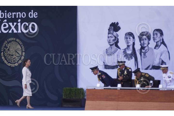 TULUM, QUINTANA ROO, 10FEBRERO2025.- Claudia Sheinbaum, Presidenta de México, encabezó la inauguración de la Base Aérea Militar No. 20 en el marco del 110 Aniversario de la Fuerza Aérea Mexicana. La acompañaron Ricardo Trevilla Trejo; secretario de la Defensa Nacional; Óscar René Rubio, comandante de la Fuerza Aérea Mexicana; y Raymundo Pedro Morales Ángeles, secretario de Marina. FOTO: PRESIDENCIA/CUARTOSCURO.COM
