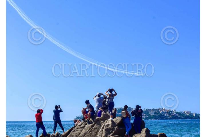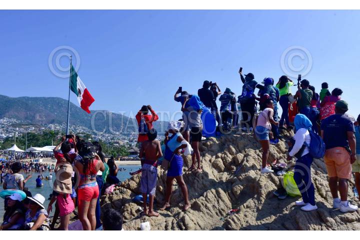 ACAPULCO, GUERRERO, 23FEBRERO2025.- Turistas y acapulqueños disfrutaron de la exhibición área "La Fuerza de México" que sea realizó sobre la bahía de Acapulco. FOTO: CARLOS CARBAJAL/CUARTOSCURO.COM