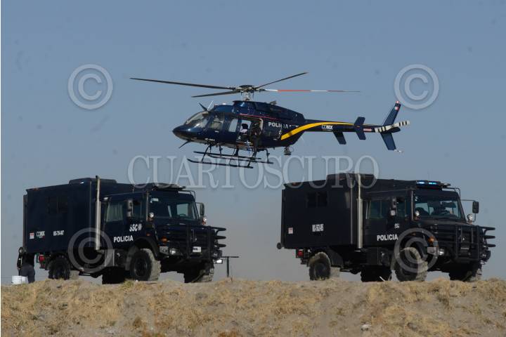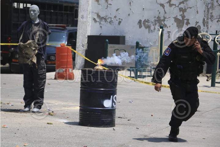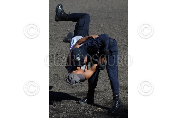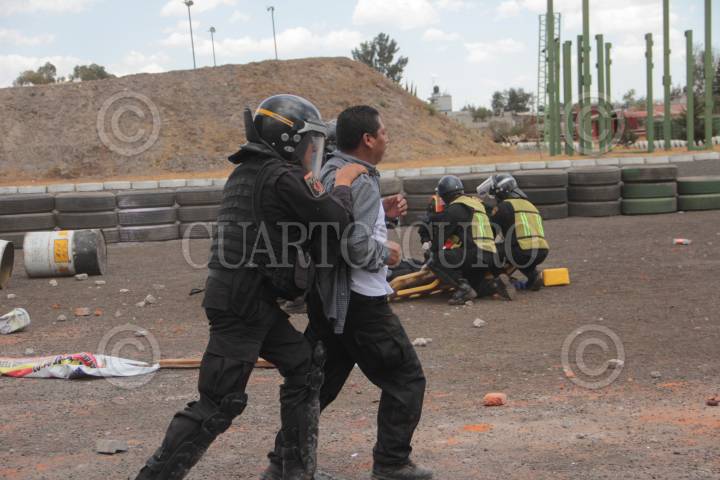 MÉXICO, D.F., 22MARZO2013.- La Fuerza de Tarea SSP, realizó un simulacro de práctica escenificando una revuelta social, los policías replegaron a los "manifestantes" con gases lacrimógenos, y a su vez resistieron envates de bombas molotov. FOTO: SSP /CUARTOSCURO.COM