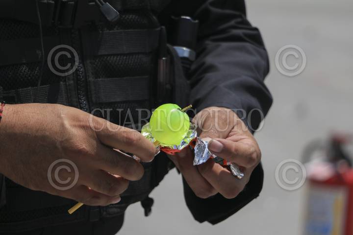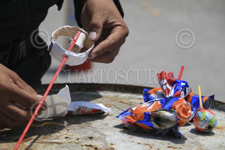 CIUDAD DE MÉXICO, 14SEPTIEMBRE2016.- Personal de Fuerza de Tarea de la SSPCDMX, mostraron a los medios de comunicación la nueva modalidad de venta de juegos pirotécnicos presentados en forma de dulces, asimismo realizaron una demostración del daño que ocasionan. FOTO: SAÚL LÓPEZ /CUARTOSCURO.COM