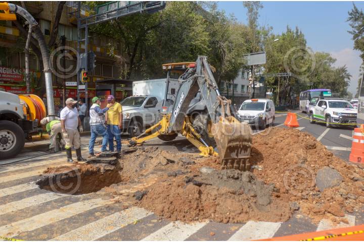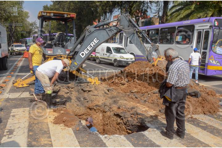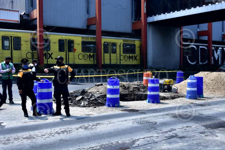 Trabajos de reparación del socavón sobre avenida Tlalpan, a la altura del metro General Anaya.
