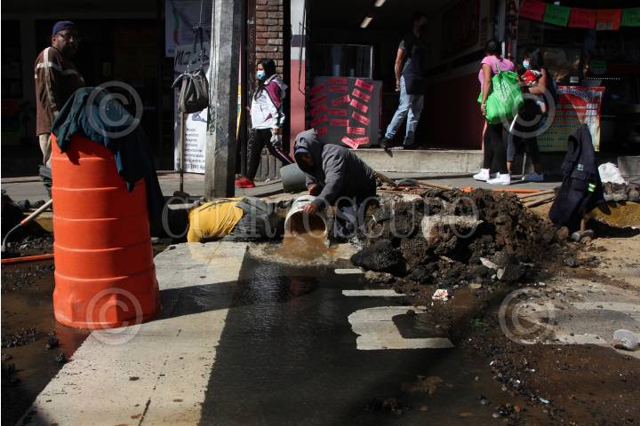 Trabajadores reparan fuga de agua potable en la Colonia San Bernabe.