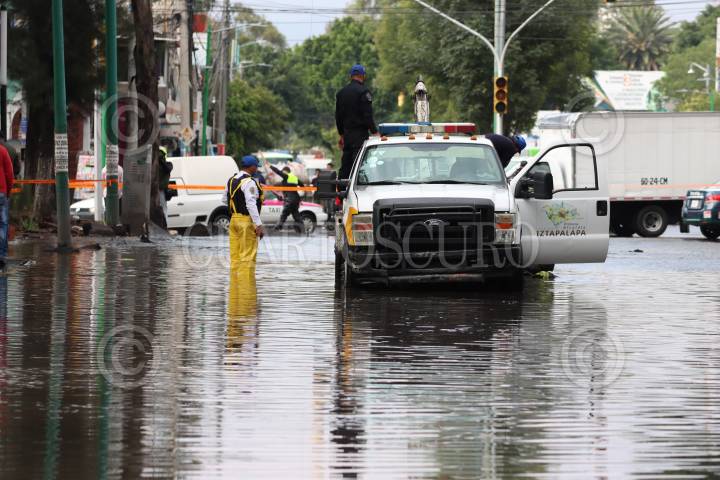 Una tremenda fuga de agua potable afectó vehículos y departamentos en la Unidad Habitacional San Lorenzo, en la alcaldía Iztapalapa.