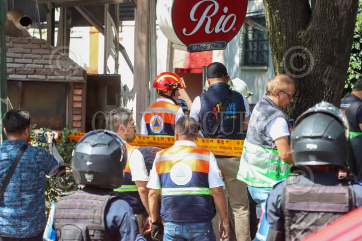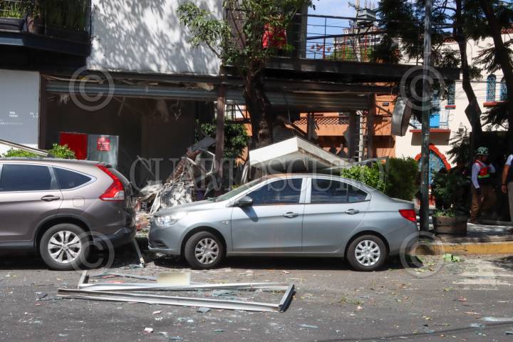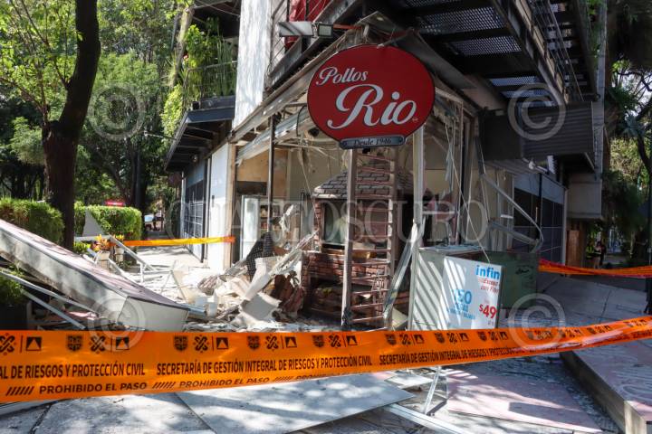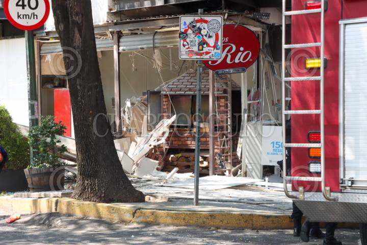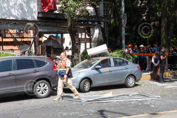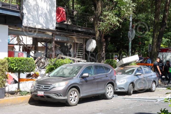 CIUDAD DE MÉXICO, 22JULIO2025.- Una fuerte explosión por acumulación de gas en una rosticería, ubicada en avenida Patriotismo 517, colonia Hipódromo Condesa. El establecimiento con razón social “Pollos Río” se cimbro cerca de las tres de la tarde, dejando dos personas gravemente heridas. El incidente se debió a una fuga de gas, dos automóviles que estaban estacionados frente al local también resultaron dañados. Los departamentos que se ubican en la planta alta no presentaron daños. FOTO: ROGELIO MORALES/CUARTOSCURO.COM