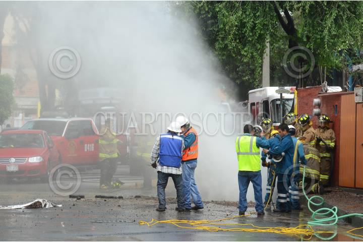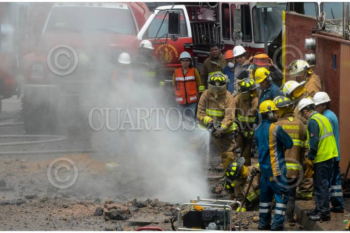 MÉXICO, D.F., 13MAYO2015.- Se registró una fuga de gas en la delegación Azacapotzalco, sobre la calle Miguel Hidalgo, Col. Santa Catarina, debido a que el tubo que transportaba la sustancia fue golpeado con maquinaria pesada. Personal de protección civil acudió a la zona para desalojar a los vecinos y controlar la fuga. FOTO: ARMANDO MONROY /CUARTOSCURO.COM