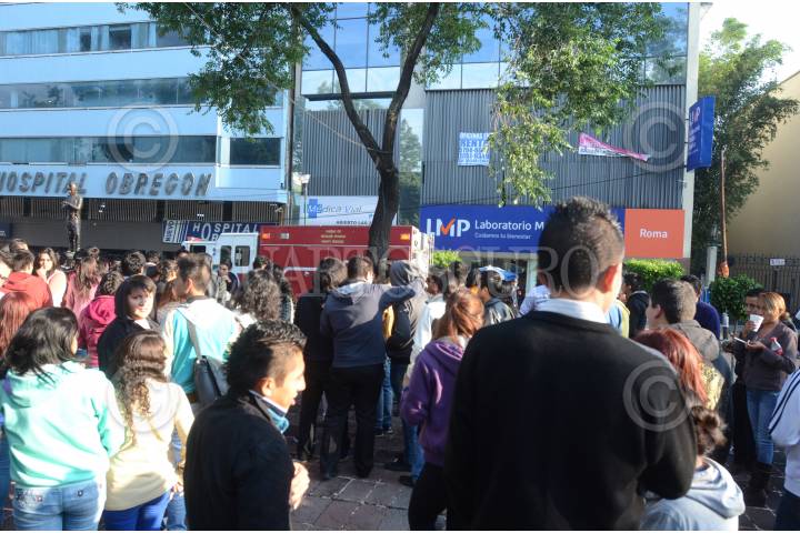 MÉXICO, D.F., 15MAYO2015.- Desalojo de un edificio por una supuesta fuga de gas por lo que acudieron bomberos para resolver el siniestro, esto en la avenida Álvaro Obregón a un costado del hospital del mismo nombre en la colonia Roma. FOTO: ARMANDO MONROY /CUARTOSCURO.COM