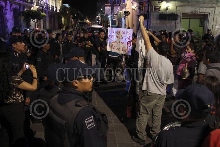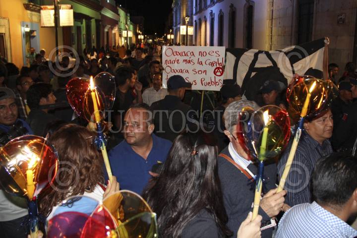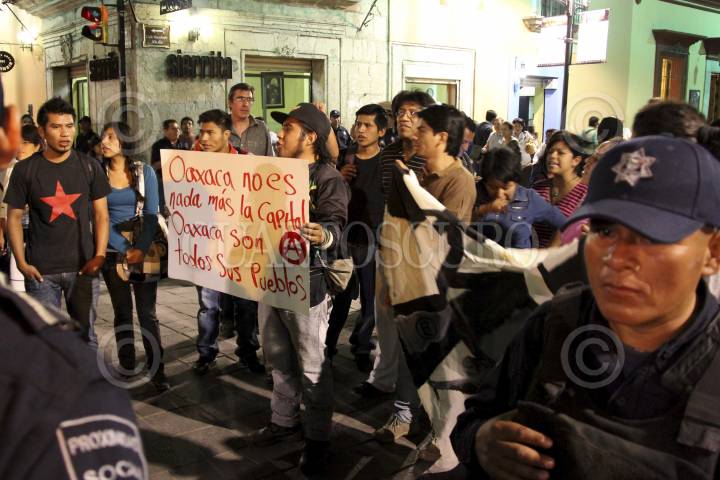 OAXACA, OAXACA, 19NOVIEMBRE2013.- Integrantes del Frente Único de Lucha hacia la Reconstrucción de la Asamblea Popular de los Pueblos de Oaxaca (FUL-APPO) protestaron durante la calenda realizada por los participantes del XII Congreso Mundial de la Organización de las Ciudades del Patrimonio Mundial (OCPM) Oaxaca 2013, evento internacional en el que participan representantes de más de 200 países provenientes de los 5 continentes. FOTO: ARTURO PÉREZ ALFONSO /CUARTOSCURO.COM