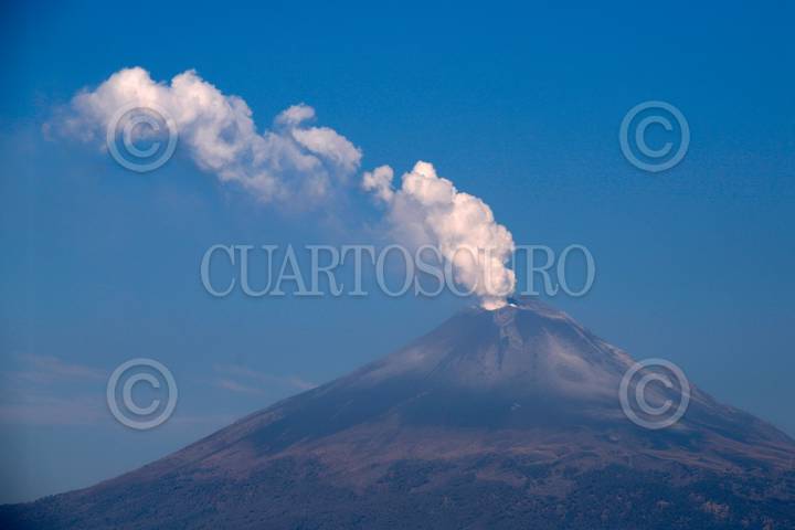 PUEBLA, PUEBLA, 14ENERO2023.- El volcán Popocatépetl lanzó larga fumarola esta tarde. El semáforo de alerta volcánica permanece en amarillo fase 2. FOTO: MIREYA NOVO/CUARTOSCURO.COM