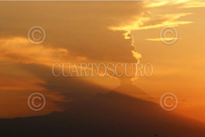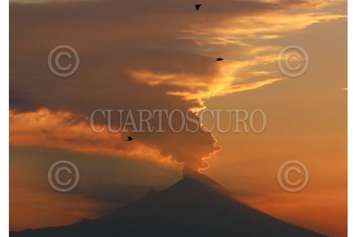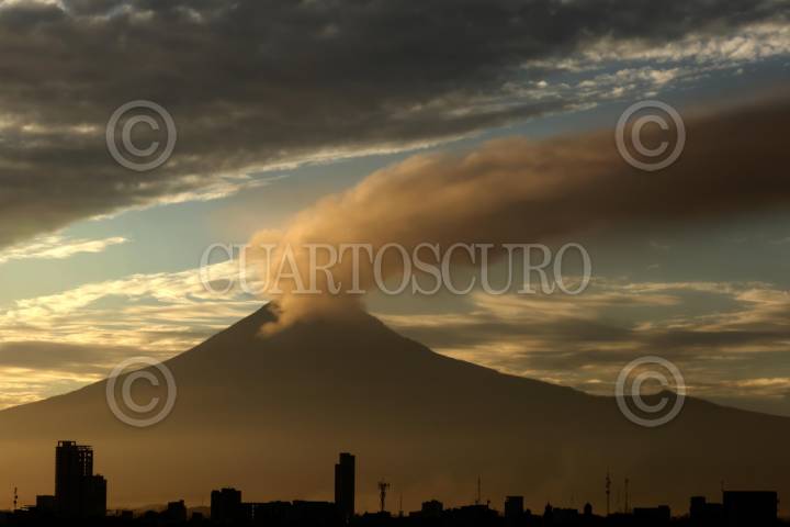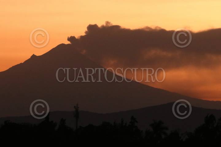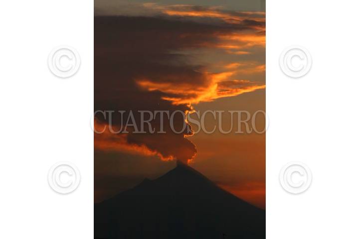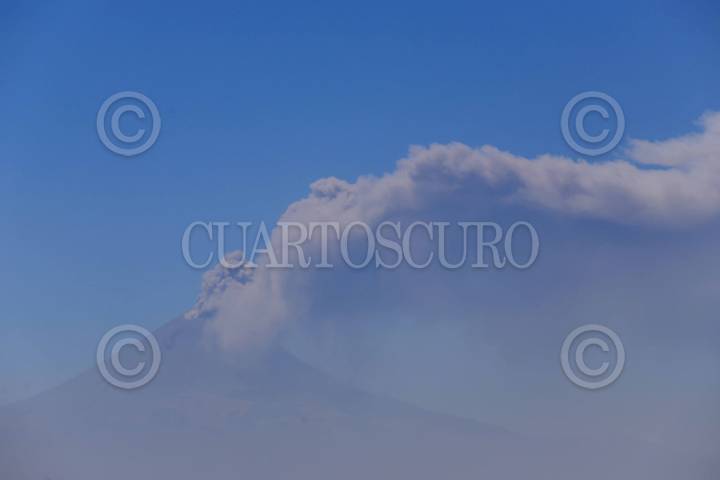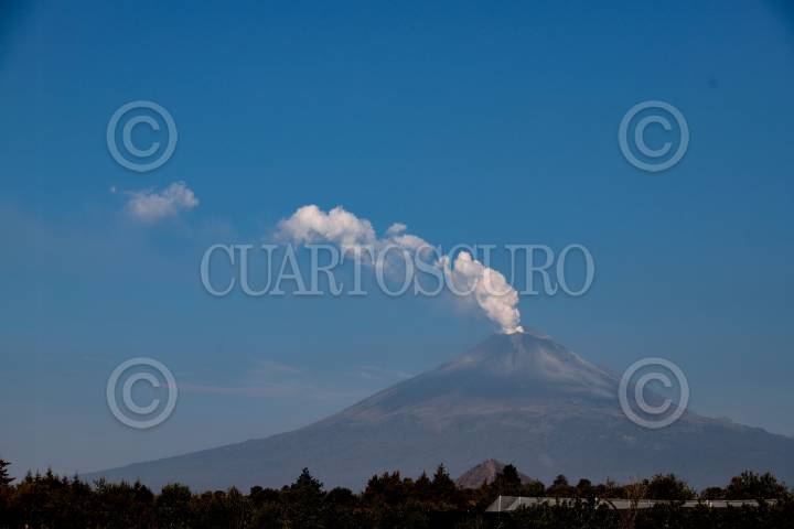 El reporte que emite el Centro Nacional de Prevención de Desastres sobre la actividad del Popocatépetl, indica que en las últimas 24 horas, mediante los sistemas de monitoreo, se detectaron ocho exhalaciones acompañadas de vapor de agua, otros gases volcánicos y ceniza. Se contabilizaron mil 417 minutos de tremor de alta frecuencia de baja a mediana amplitud, asociados a la emisión continua de gas, vapor de agua y ceniza, así como en ocasiones de expulsión de fragmentos incandescentes a cortas distancia del cráter. En la imagen el volcán emite una gran fumarola de ceniza visto desde Tianguismanalco.