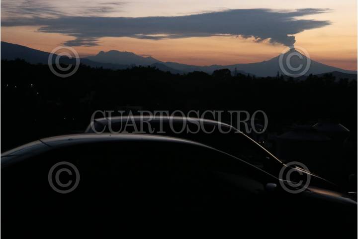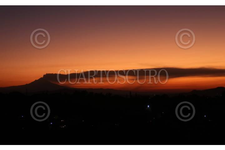 El reporte que emite el Centro Nacional de Prevención de Desastres sobre la actividad del Popocatépetl, indica que en las últimas 24 horas, mediante los sistemas de monitoreo, se detectaron ocho exhalaciones acompañadas de vapor de agua, otros gases volcánicos y ceniza. Se contabilizaron mil 417 minutos de tremor de alta frecuencia de baja a mediana amplitud, asociados a la emisión continua de gas, vapor de agua y ceniza, así como en ocasiones de expulsión de fragmentos incandescentes a cortas distancia del cráter. En la imagen, durante la madrugada el volcán emite una gran fumarola de ceniza visto desde el monte Teotón, en San Nicolas de los Ranchos,