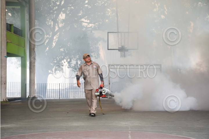 CAMPECHE, CAMPECHE 13 DE SEPTIEMBRE 2023.- Vectores de la secretaria de salud realizaron trabajos de termo nebulización en la escuela Presidente Ávila Camacho, esto para prevenir el dengue, zika, y chikungunya ante el incremento del dengue en la ciudad. Cabe señalar que en la península la secretaria de salud ha emitido una alerta epidemiológica preventiva con el objetivo de realizar acciones de prevención contra el mosquito transmisor. FOTO: MICHAEL BALAM/CUARTOSCURO.COM