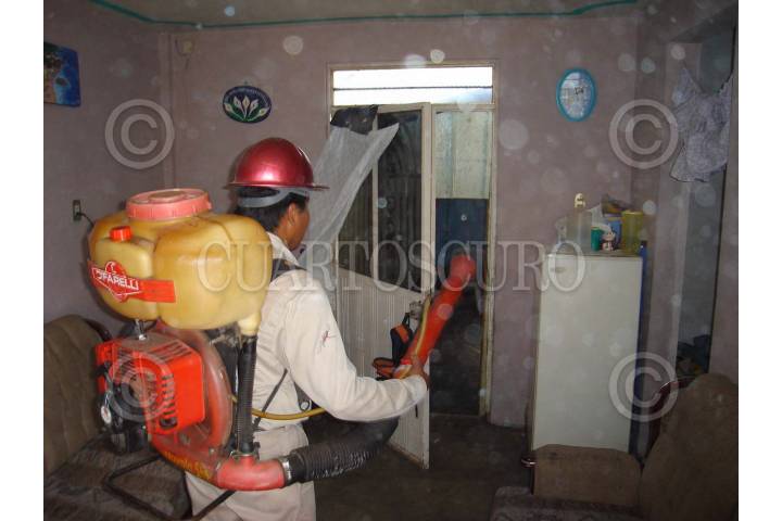 CHILPANCINGO, GUERRERO, 15 ABRIL 2008.- Personal de la Secretaria de Salud durante la fumigacion que llevan a cabo en viviendas, con la finalidad de evitar y erradicar la reproduccion del mosco transmisor del dengue. FOTO: OSCAR ALVARADO/CUARTOSCURO.COM