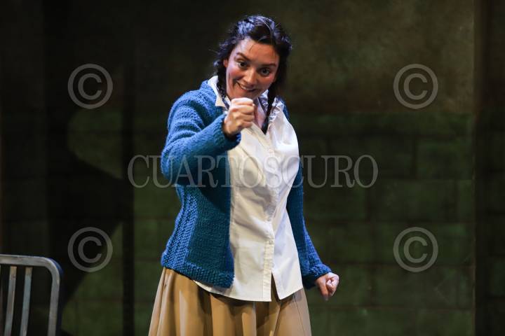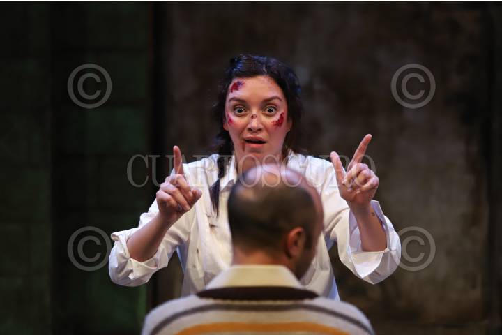 Regina blandón actuando en la obra de teatro “The Pillowman” de Martin McDonagh en el Foro Lucerna.