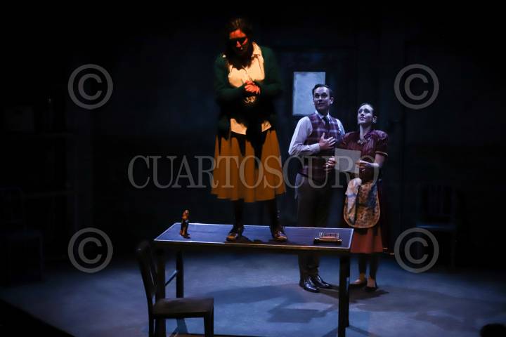 Regina Blandón, Adrián Pola y Alicia Paola actuando en la obra de teatro “The Pillowman” de Martin McDonagh en el Foro Lucerna.