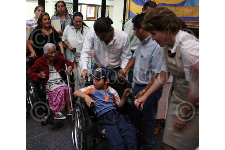 CHILPANCINGO, GUERRERO, 04ABRIL2009.- Aspecto general de la "Entrega de Aparatos Funcionales" que realizo la señora Mercedes Calvo de Astudillo presidenta del DIF municipal a personas de la tercera edad y niños de escasos recursos económicos, este viernes por la tarde en el interior del Palacio Municipal, donde estuvo acompañada por su esposo el alcalde Héctor Astudillo Flores. FOTO: OSCAR ALVARADO/CUARTOSCURO.COM