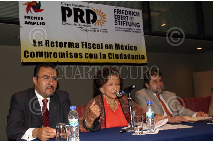 MÉXICO, D.F., 19JULIO2007.- Ifigenia Martínez, fundadora del PRD, Pablo Trejo, Suenda Blanke y Javier González Garza, coordinador de los diputados perredistas, durante el foro "La Reforma Fiscal en México, Compromisos con la Ciudadanía", realizada en un hotel del Centro Histórico. FOTO: MOISÉS PABLO/CUARTOSCURO.COM