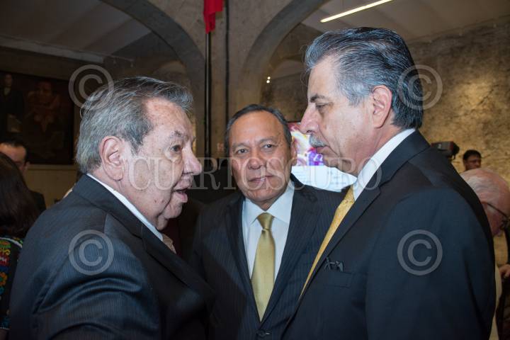 CIUDAD DE MÉXICO, 15JUNIO2017.- El senador Porfirio Muñoz Ledo junto con los políticos Jésus Zambrano y Jésus Ortega, durante el homenaje en honor a la trayectoria de la la maestra Ifigenia Martínez, fundadora del PRD, en reunión con militantes del partido Político, en la Antigua Casona de Xicoténcatl. FOTO: MARIO JASSO /CUARTOSCURO.COM