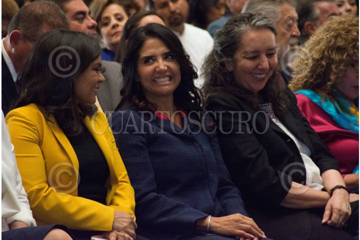 CIUDAD DE MÉXICO, 15JUNIO2017.- Alejandra Barrales, presidenta nacional del PRD, y Beatriz Mojica, secretaria general del PRD, durante el homenaje en honor a la trayectoria de la la maestra Ifigenia Martínez, fundadora del PRD, en reunión con militantes de este partido político en la Antigua Casona de Xicoténcatl. FOTO: MARIO JASSO /CUARTOSCURO.COM