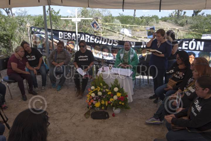 SALINAS VICTORIA, NUEVO LEÓN, 29OCTUBRE2016.- La asociación civil Fuerzas Unidas por Nuestros Desaparecidos en Nuevo León ofrecieron un homenaje a pie de fosa para las víctimas de la violencia con una misa por el padre José Manuel Guerrero Loyola en el Rancho Las Abejas, lugar donde, en 2011 se encontraron 250 mil fragmentos de huesos que correspondían a 43 personas desaparecidas. FOTO: GABRIELA PÉREZ MONTIEL /CUARTOSCURO.COM