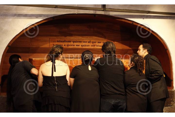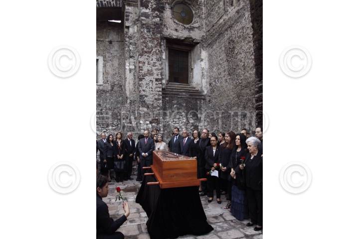 MÉXICO, D.F, 17ABRIL2015.- Los restos atribuidos de Sor Juana Inés de la Cruz fueron trasladados durante un cortejo funebre y posteriormente depositados detrás de una vitrina dentro de la Universidad del Claustro de Sor Juana por la conmemoración de los 320 años de su muerte. FOTO: RODOLFO ANGULO /CUARTOSCURO.COM