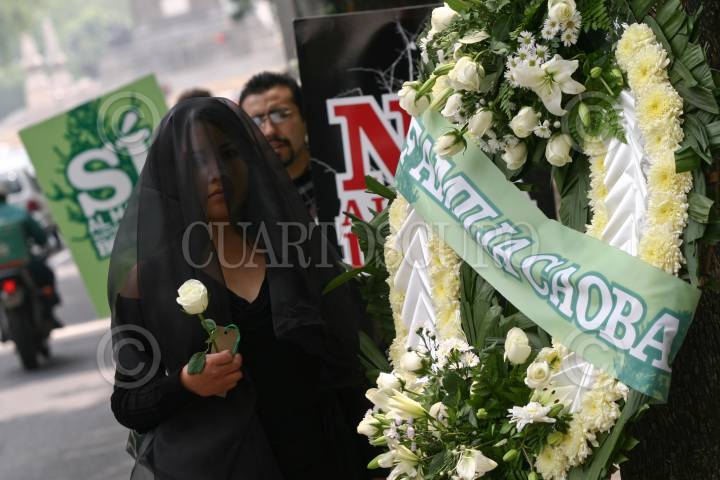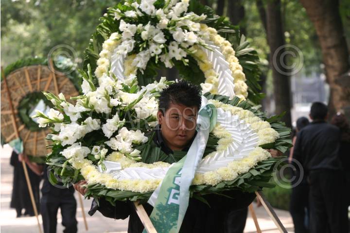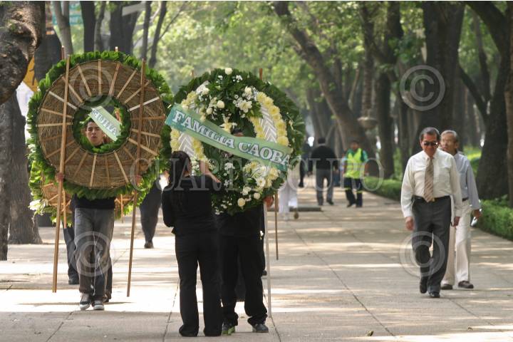 MÉXICO, D.F 21MAYO2008.- Integrantes del Partido Verde Ecologista de México (PVEM) colocaron coronas fúnebres de flores simbolizando la muerte de las selvas y bosques mexicanos en el Paseo de la Reforma con motivo del Día Mundial de la Diversidad Biológica. FOTO: RODOLFO ANGULO/CUARTOSCURO.COM