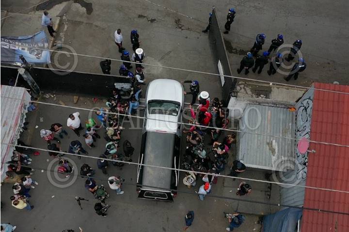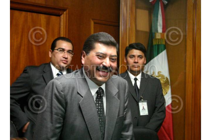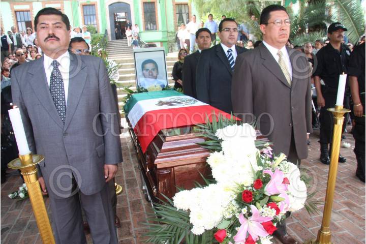 OAXACA, OAXACA 03JULIO2008.- El procurador de Oaxaca Evencio Nicolás Martínez Ramírez, informó que solo hubo cinco presuntos detenidos por secuestro, estó unos minutos después de los honores fúnebres a el policía Víctor Hugo Velásquez Vásquez. asesinado la mañana de ayer en cumplimiento de su deber. FOTO: MAX NÚÑEZ/CUARTOSCURO.COM