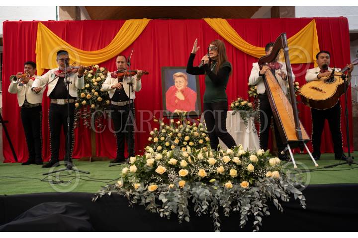 ALTO LUCERO, VERACRUZ, 19FEBRERO2025.- Familiares de la cantautora internacional Francisca Viveros Barradas, mejor conocida por su nombre artístico "Paquita la del Barrio", recibieron un reconocimiento durante un homenaje con los restos presentes en el pueblo natal de la intérprete de 'Rata de dos patas.' Al finalizar, su hermana Viola Dorantes, interpretó un par de canciones en compañía de mariachis para amenizar al pueblo que fue a despedir a su ídola musical. FOTO: VICTORIA RAZO/CUARTOSCURO.COM<