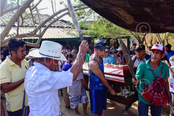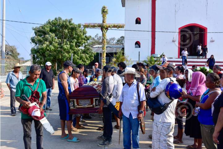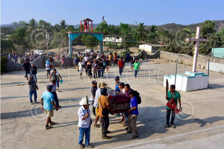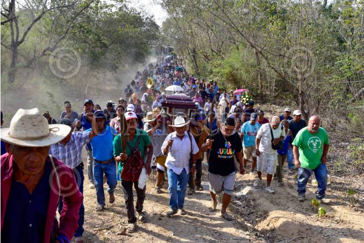 ACAPULCO, GUERRERO, 27ABRIL2025.- El luchador social líder del Consejo de Ejidos Opositores a la Presa La Parota (Cecop) y de la asociación Turisteros Unidos en Defensa y Rescate de la Playa Icacos (Tuderpi), Marco Antonio Suastegui Muñoz, fue sepultado en la comunidad de Cacahuetepec en la zona rural de Acapulco, luego de que falleciera el día viernes tras varios días de estar hospitalizado por las heridas que sufrió tras recibir un atentado armado en la playa Icacos de Acapulco. FOTO: CARLOS ALBERTO CARBAJAL/CUARTOSCURO.COM
