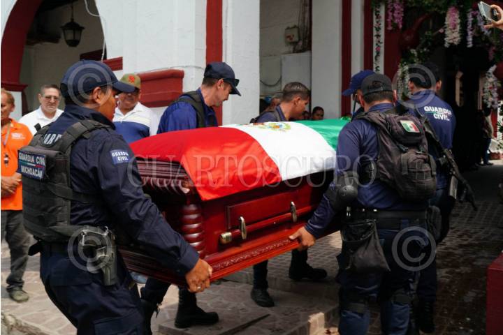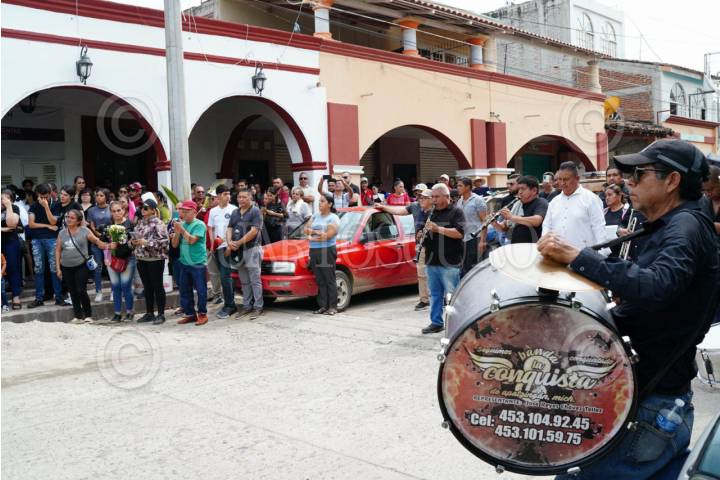 TEPALCATEPEC, MICHOACÁN, 19JUNIO2025.- Familiares, amigos y autoridades locales se reunieron para despedir a Martha Laura Mendoza y su esposo, asesinados ayer en el centro de Tepalcatepec. Durante la ceremonia fúnebre, se recordó a la alcaldesa y se confirmó que la síndica municipal asumirá temporalmente la presidencia municipal. FOTO: JUAN JOSÉ ESTRADA SERAFÍN / CUARTOSCURO.COM
